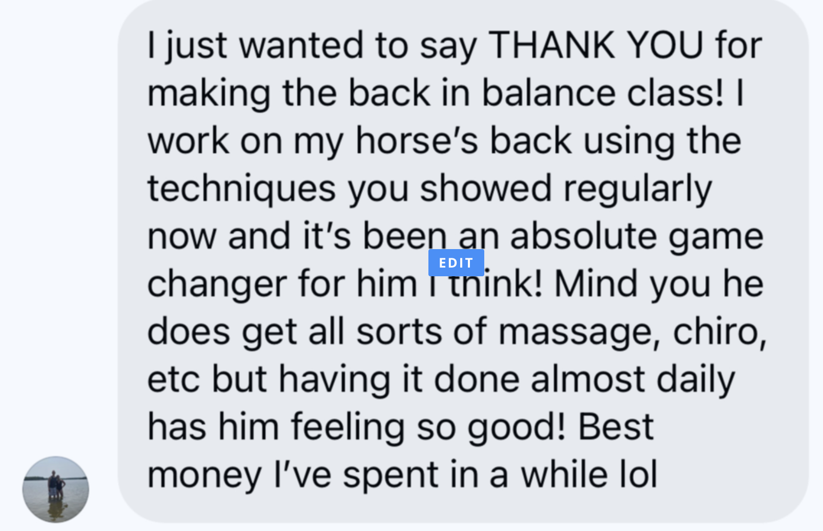 Each technique is backed by years of professional equine bodywork experience and designed to create lasting changes in your horse’s comfort, posture, and performance.
