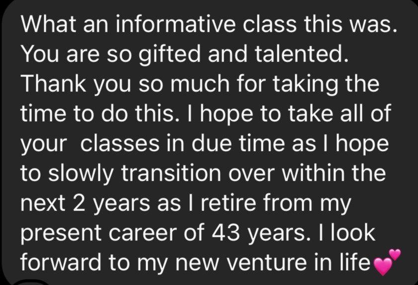 Now, I want to pay it forward: I’m hosting a free masterclass on the 6 steps I took to become a 6 figure equine bodyworker, and you’re invited.Â